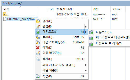 이제 winscp를 통해 로컬로 내려받으시거나 보관하시면되며 여기서는 간단히 복구 방법도 기술해보겠습니다.