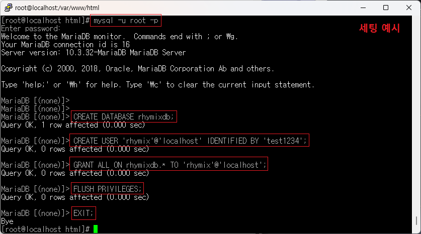 쉘에 들어가서 다음 명령을 입력하십시오