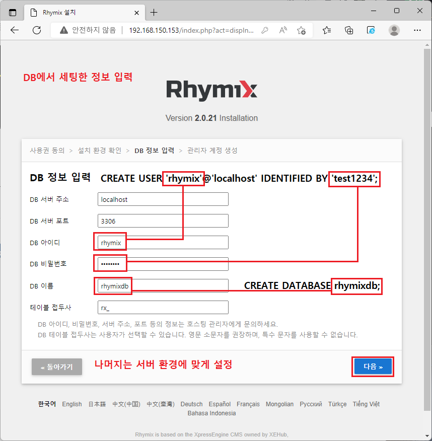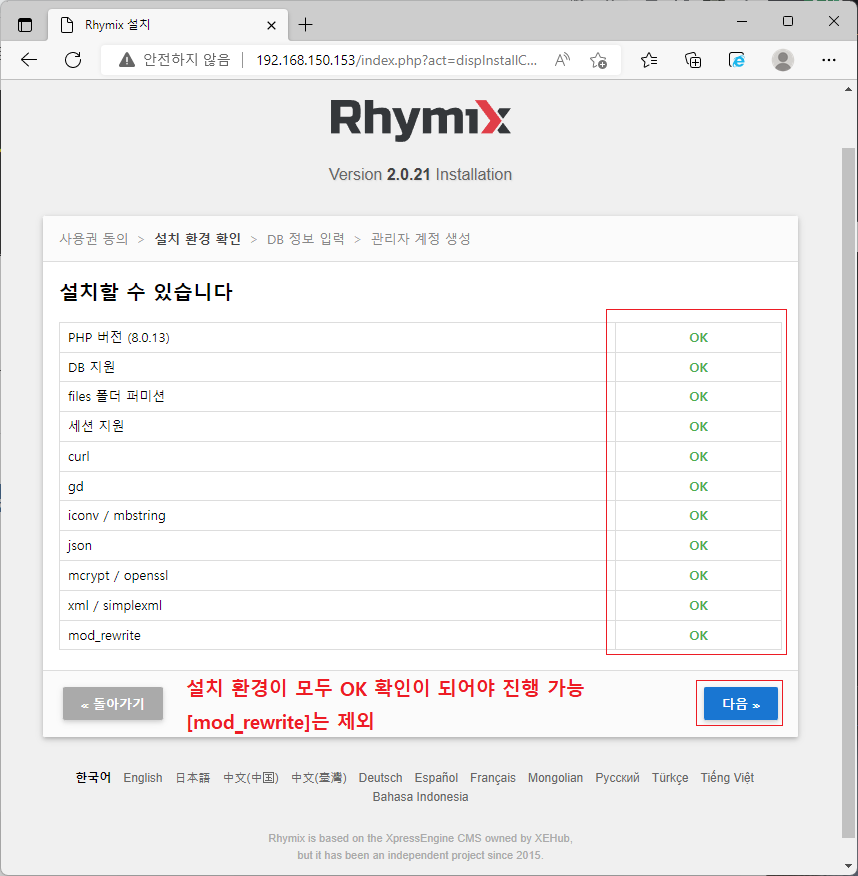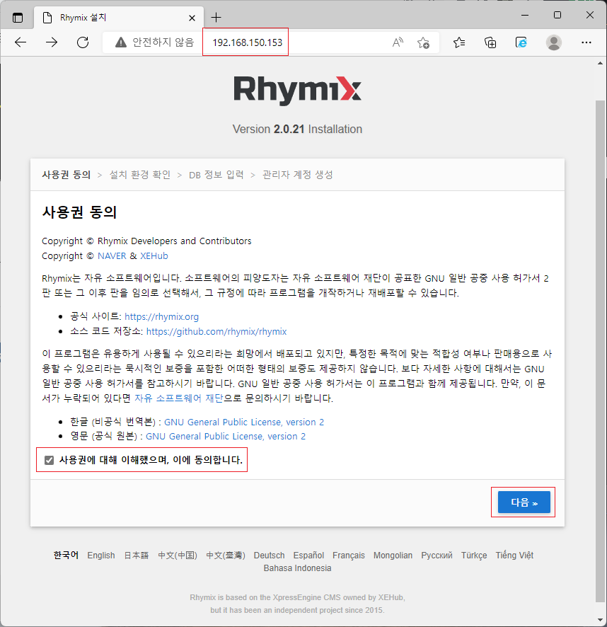 언어 설정을 선택하고 다음을 클릭합니다.
