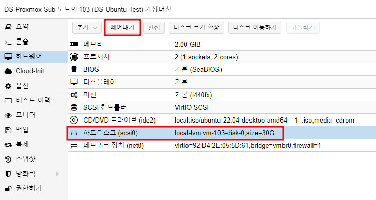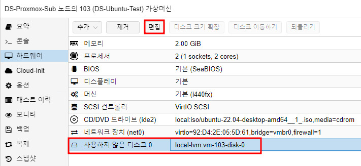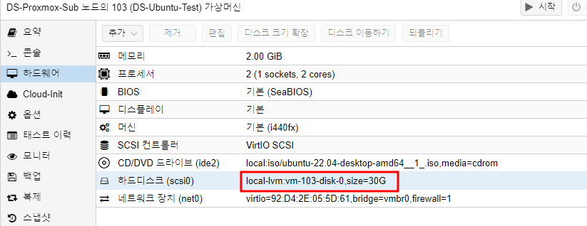 여기서는 local-lvm:vm-103-disk-0 이 되겠네요.