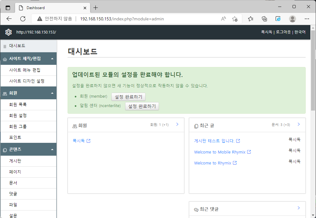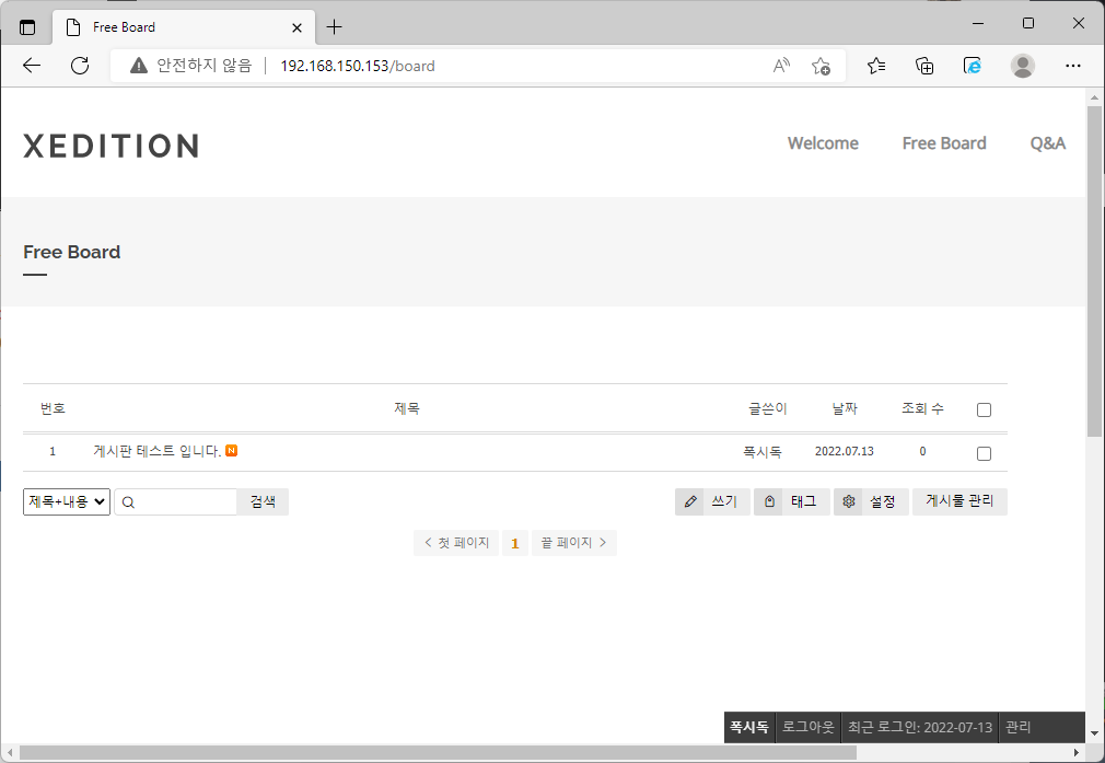 ⑥ 웹 구동 확인 테스트[스크린샷 참고]