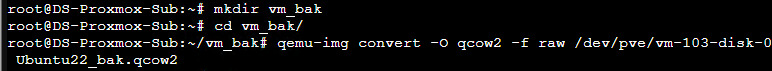 이제 백업할 디렉터리로 이동해주신뒤에 qemu-img 명령어를 통해 파일로 떨궈줍니다.