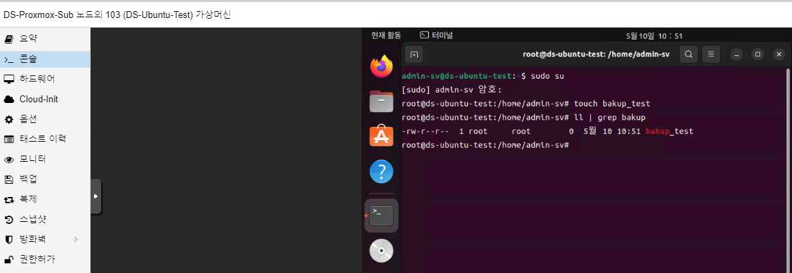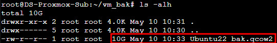 그다음 Proxmox Host의 쉘로 접근한뒤에 백업을 할 디렉터리로 이동해주시고 아래명령어를 통해 해당 vm disk의 논리적 위치를 확인해줍니다.
