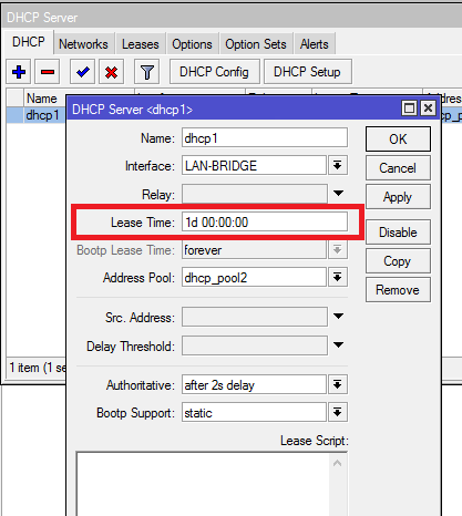Lease Time 항목을 10분에서 1일(24시간)로 변경합니다.