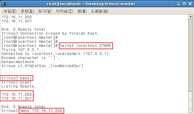- 텔넷 접속 후 Master를 컨트럴 하기 위한 정보들이 포함되어있다.