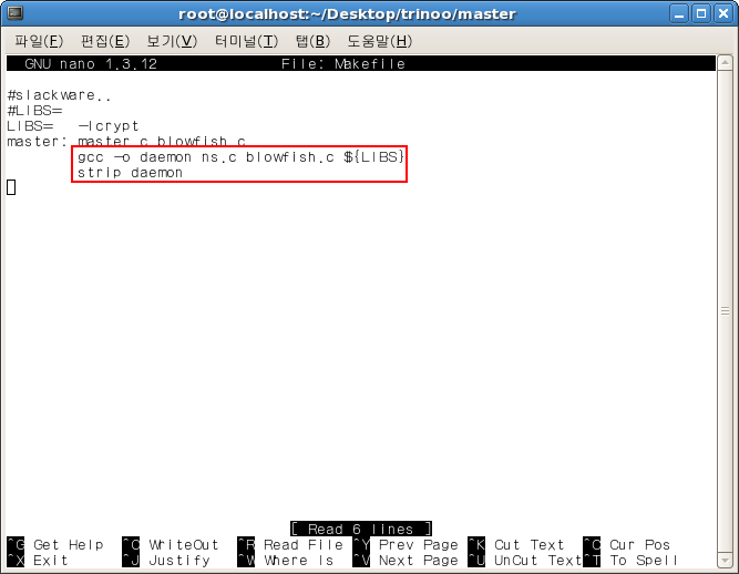- trinoo 압축해제 후 해당 경로의 daemon 디렉토리에 접근하게 되면 ns.c 파일이 존재 하는데 Master와의 소켓 통신을 할 수 있도록Master가 될 단말기의 IP 주소를 입력하고 해당 IP에서 명령이 있을 때까지 대기 하게 된다.