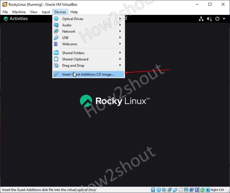Virtualbox에 Rocky Linux를 설치하면 화면 크기가 자동으로 조정되지 않습니다. 또한 호스트에서 게스트로의 클립보드 및 파일 끌어서 놓기와 같은 일부 다른 기능에 액세스할 수 없습니다. 이를 위해 Rocky Linux 8에 VirtualBox 게스트 추가 ISO를 설치해야 합니다.