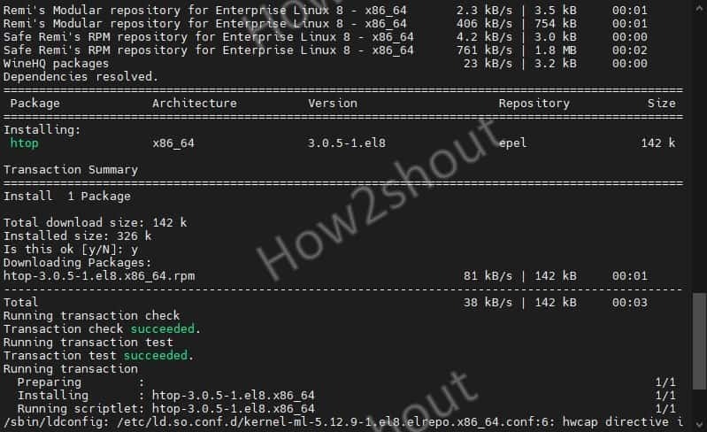 3. Almalinux/Rocky/CentOS/RHEL 8에서 htop을 실행합니다.