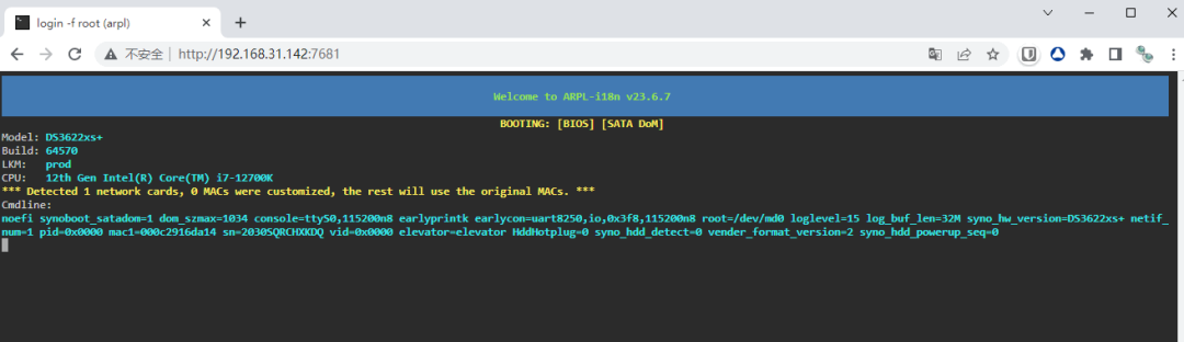 IP가 자동으로 획득되기를 기다리면 브라우저는 프롬프트된 URL 주소 http://IP:7681 을 엽니다.