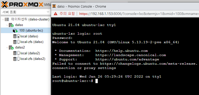 클러스터 구성을 위해 ESXi 밑에 테스트서버로 구성한 Proxmox Node 2대이기때문에 중첩가상화로 VM생성은 하지않고 LXC Container를 통해서 에제를 진행해보겠습니다.