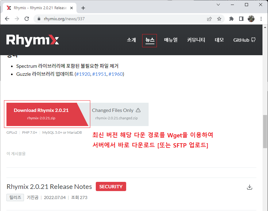 [root@]# wget https://rhymix.org/files/attach/releases/rhymix-2.0.21.zip [wget 다운로드]