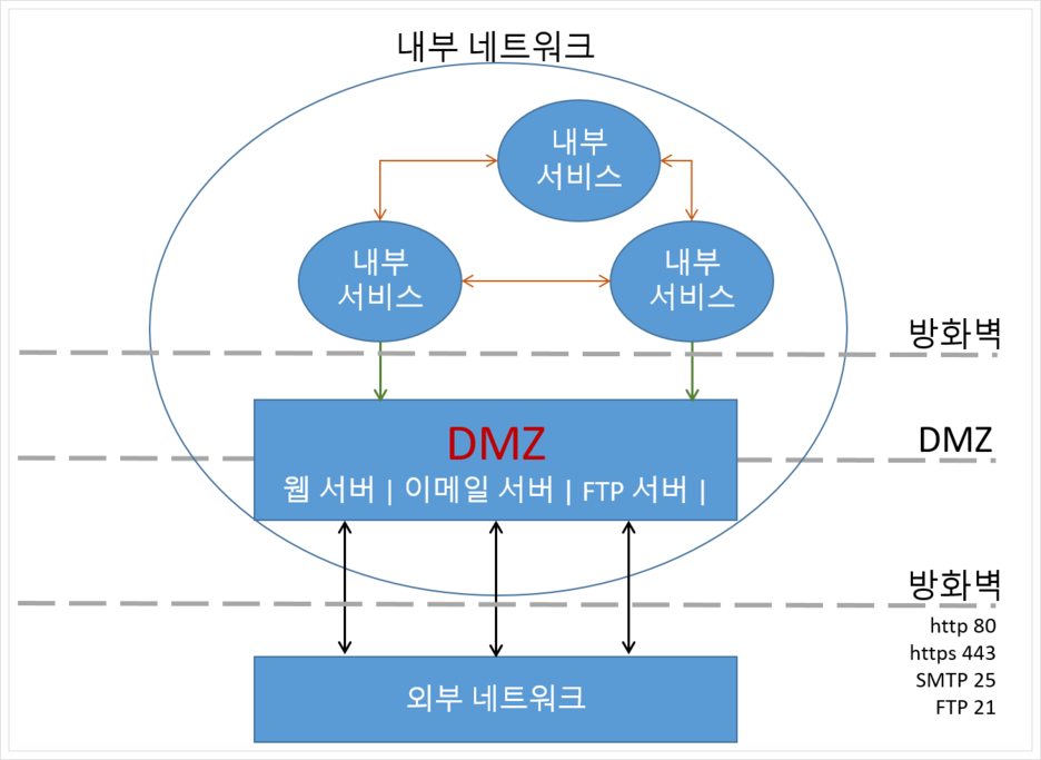 ⑤ 스크린드 서브넷(Screened Subnet) 스크린드 호스트의 보안상 문제점을 보완한 모델이다. 외부 네트워크와 내부 네트워크 사이에 하나 이상의 경계 네트워크를 두어 내부 네트워크를 외부 네트워크로 분리하기 위한 구조이다.
