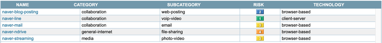 < 그림 4 > 네이버 트래픽 식별 목록 (출처 : 팔로알토 네트웍스)