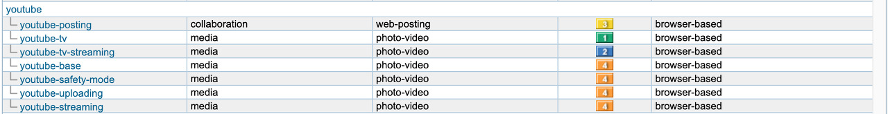 아래 <그림 5>은 유튜브 트래픽 식별 목록입니다. 영상을 시청하는 것 이외에도 영상을 업로드하는 트래픽도 식별할 수 있는 것을 확인할 수 있습니다.