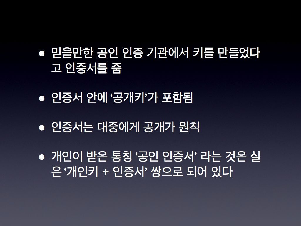 - 공개키 암호화 방식은 공개키 저장소(공개키 레파지토리)의 공개키가 바꿔치기 당하는 중간자 공격에 취약