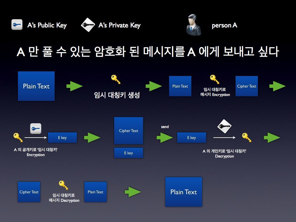 - 공개키 암호화 방식은 공개키 저장소(공개키 레파지토리)의 공개키가 바꿔치기 당하는 중간자 공격에 취약
