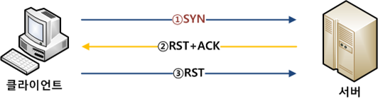 - 닫혀있는 경우 : SYN + ACK 패킷을 받은 후 RST 패킷을 보내 연결을 끊는다.