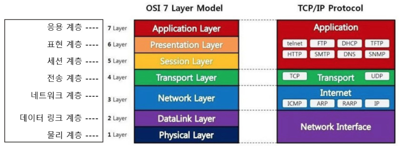 우리가 사용하는 인터넷과 같은 통신은 참가하는 모든 단말이 동일한 규칙으로 신호를 주고받아야 하는데 이를 통신 규약을 프로토콜(Protocol)이라고 합니다. 그중에 가장 대표적인 것이 ISO(국제표준화기구)에서는 제정한 OSI 7 레이어 참조 모델이 입니다.