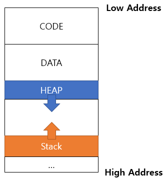 - Heap 영역 : 동적 메모리 할당 영역
