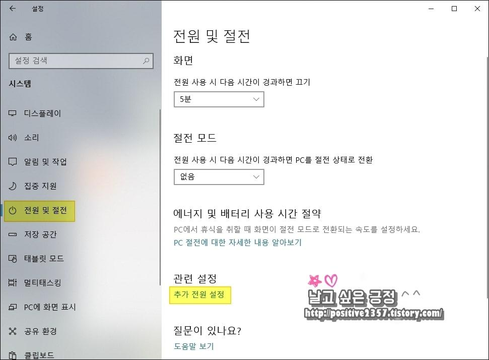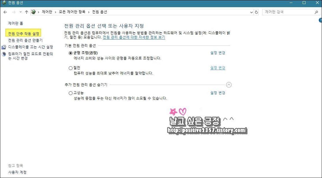 전원 및 절전 - 추가 전원 설정 - 전원 단추 작동 설정