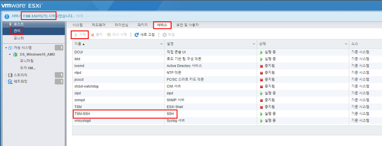 관리 -> 서비스 -> TSM-SSH -> 시작