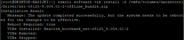 esxcli software vib install -d /vmfs/volumes/datastore1/Driver/net-r8125-9.004.01-2-offline_bundle.zip