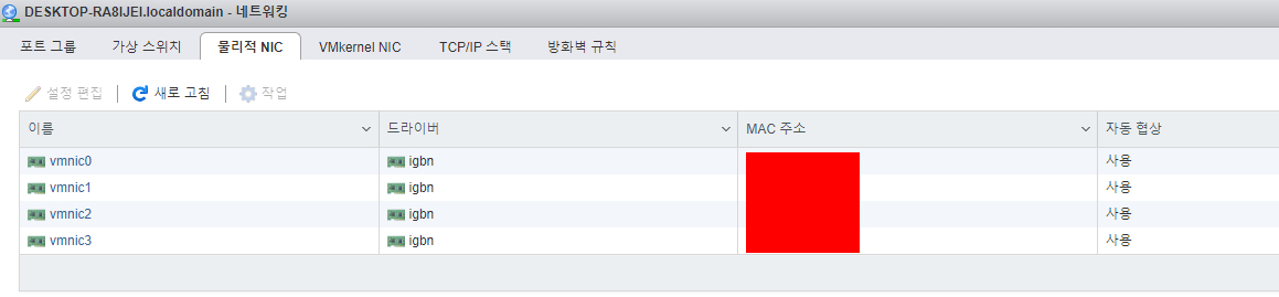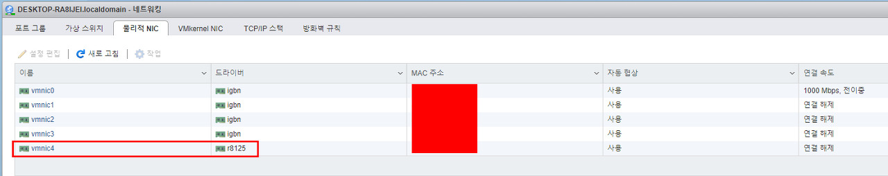 저같은경우 ESXi를 설치한 메인보드의 메인 LAN이 Realtek 8125B 2.5G랜인데 인식을 못해서..