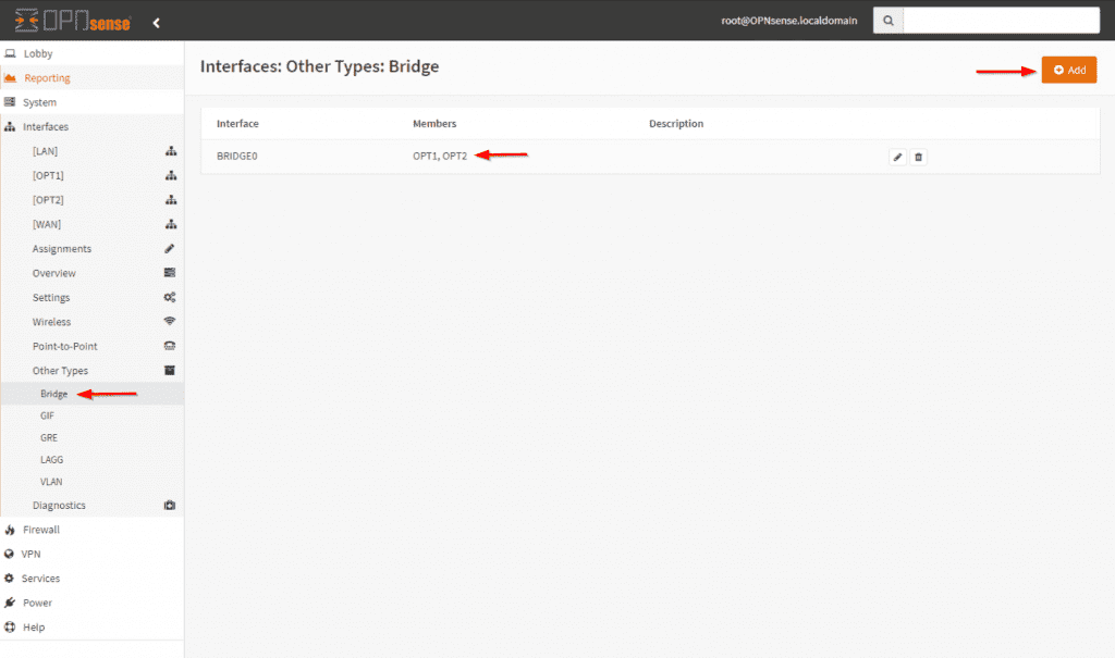- Bridge 메뉴로 돌아가서 bridge0 을 편집하십시오 . OPT3 추가 및 저장