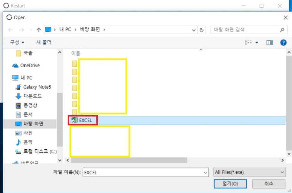 종료되면 자동으로 실행되게 하고싶은 프로그램 실행파일을 선택합니다.
