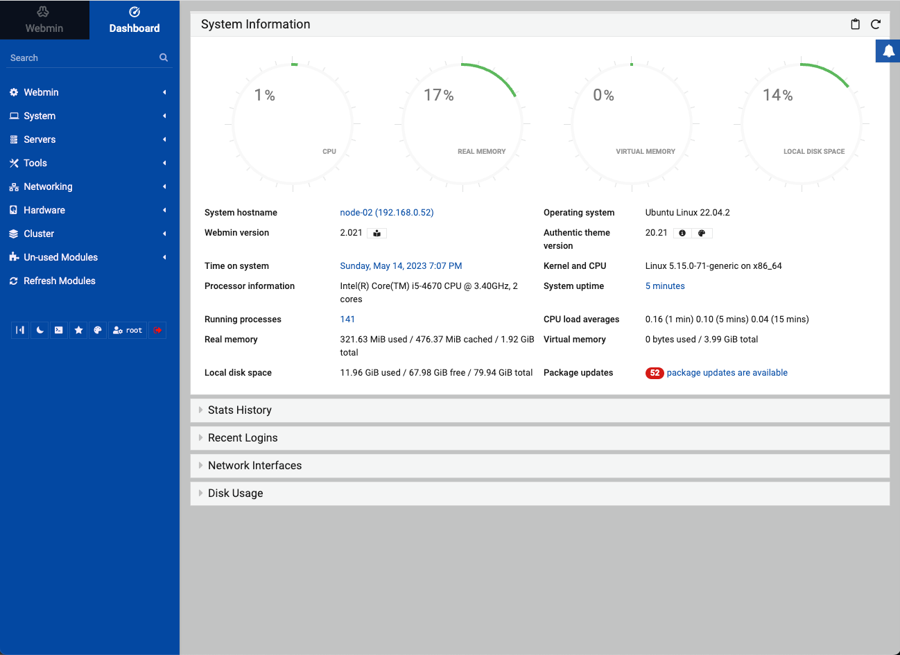 sudo apt-get install -y webmin