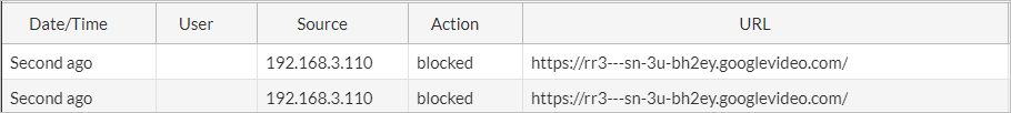 Youtube가 차단되면 webfilter 로그에서 확인 가능하다.