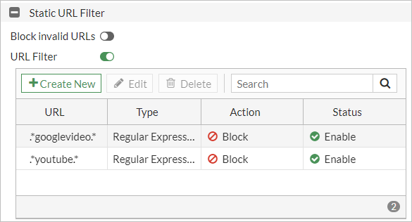 Fortigate Static URL Filter를 사용하여 Youtube 차단