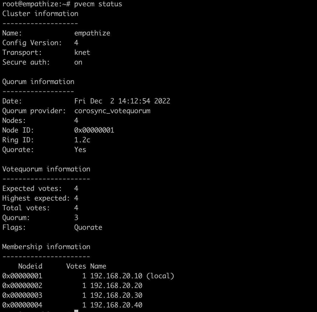 root@empathize:~# pvecm nodes